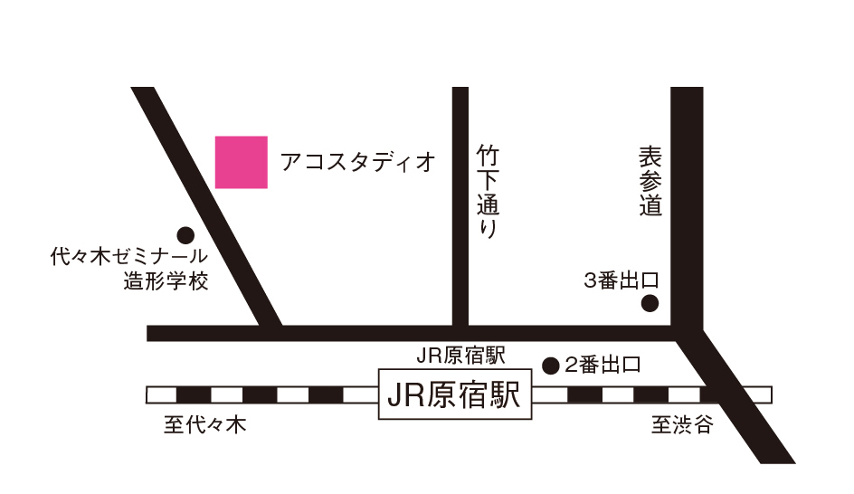 原宿アコスタディオ 渋谷区神宮前1-23-27 (JR原宿駅竹下口より徒歩3分)